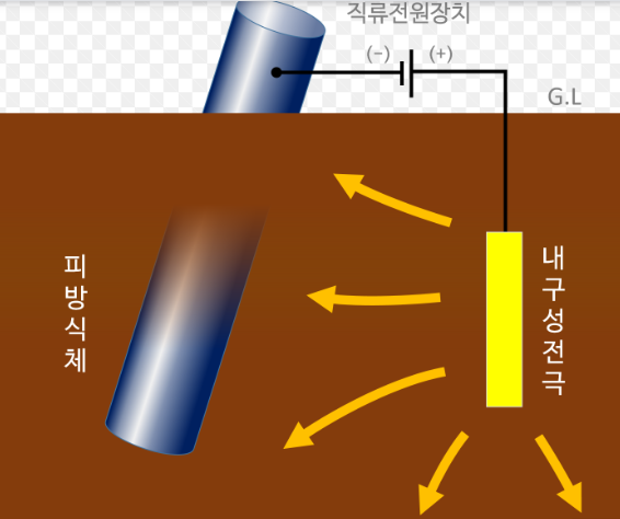 부식은 금속이 산소와 반응하여 산화되는 전기화학적 과정이다. 전기방식은 이 과정을 제어하여 금속이 음극으로 작용하도록 한다. 금속이 음극이 되면, 전기화학적 반응에서 금속이 산화되지 않고 보호된다.