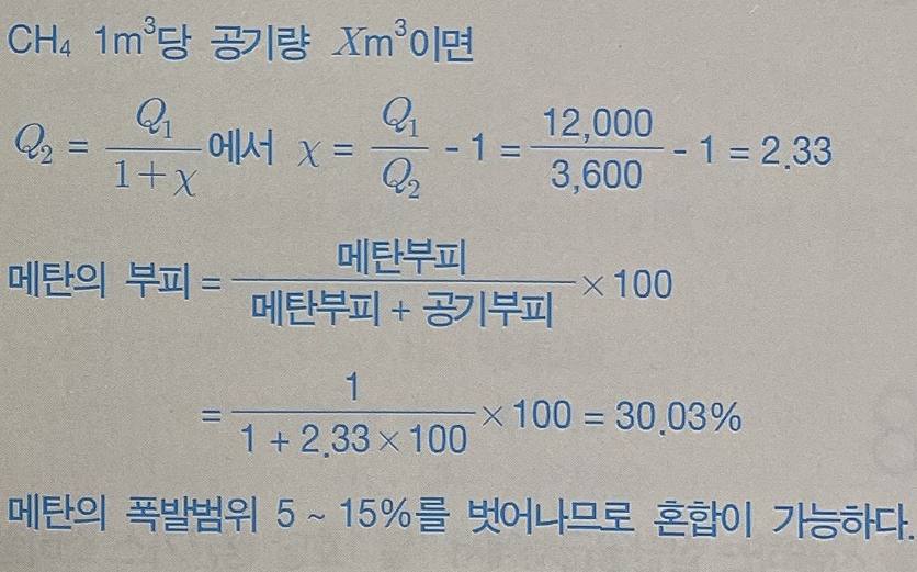 3. 발열량이 12,000kcal/Nm3인 메탄(CHA)을 주성분으로 하는 가스에 공기를 희석하여 3,600kcal/Nm3로 변경하려고 할 때 공기희석의 가능여부를 판별하시오.