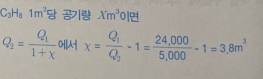 9. 프로판 가스의 총발열량은 24,000kcal/m3이다. 이를 공기 와 혼합하여 5,000kcal/m3의 발열량을 갖는 가스로 제조하려 면 프로판 가스 1m3에 대하여 얼마의 공기를 희석하여야 하 는지 계산하시오.