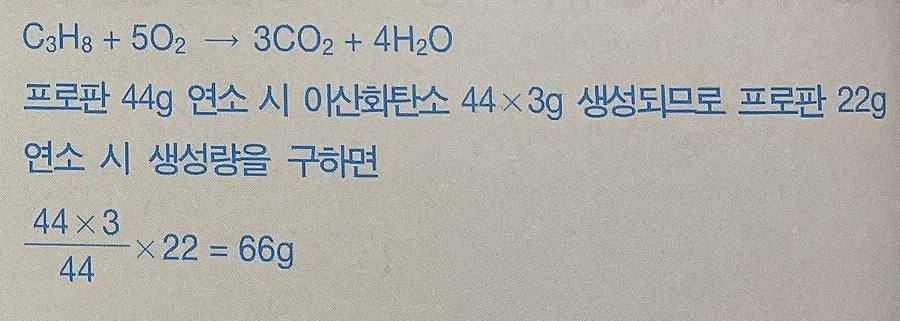 8. 프로판(C3H8) 22g이 공기 중에서 완전연소할 때 이산화 탄소(CO2) 생성량은 몇 g인가 계산하시오.