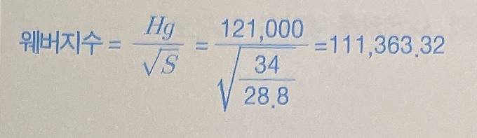 5. 도시가스 총발열량이 121,000kcal/Nm3, 도시가스의 분자량 이 34g/mol 일 때 웨버지수를 구하시오 (단, 공기 분자량은 28,8이다)